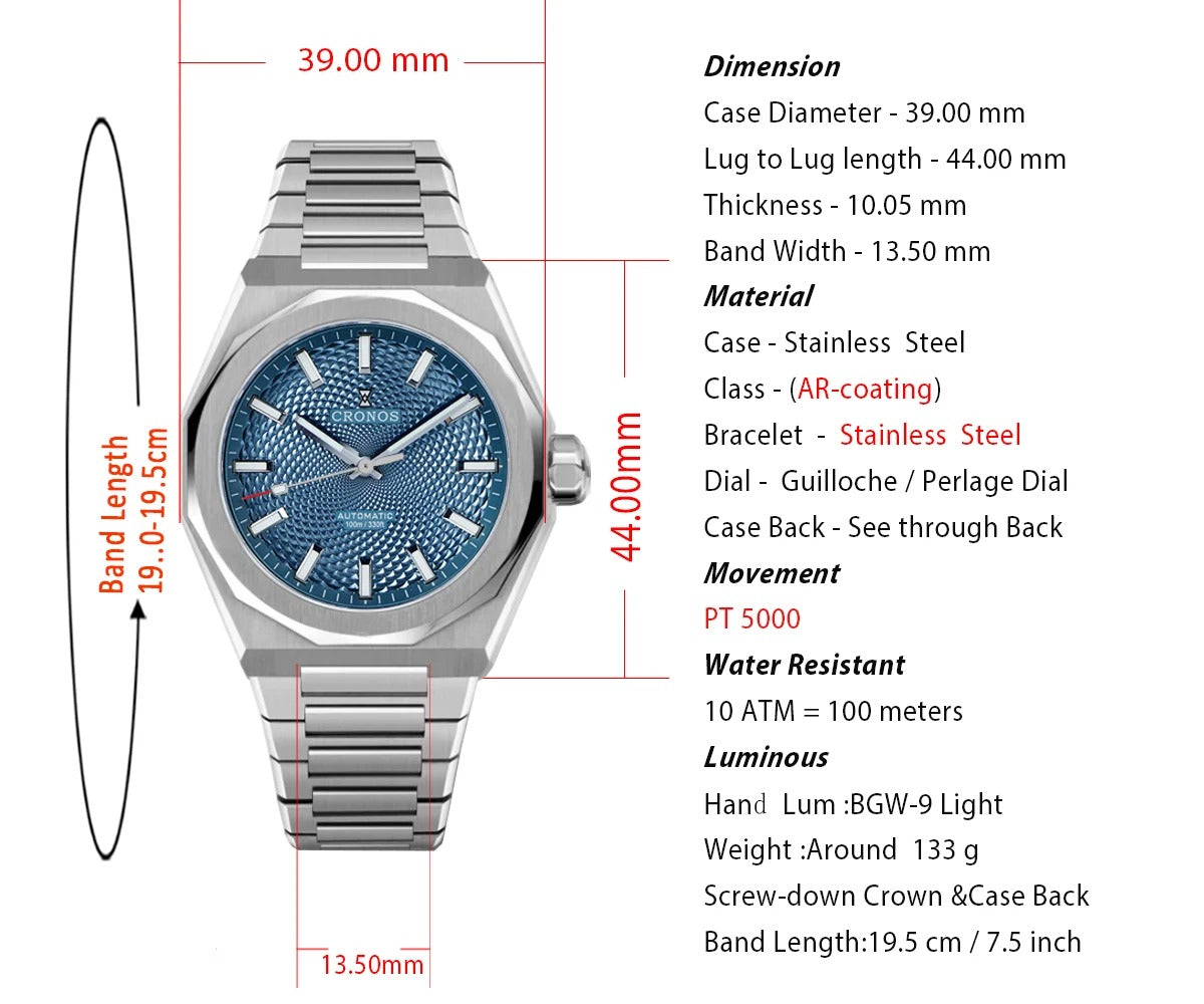 Cronos 2025 Rhombus / Perlage Dial Limited 39mm See-through Caseback L6028 V3