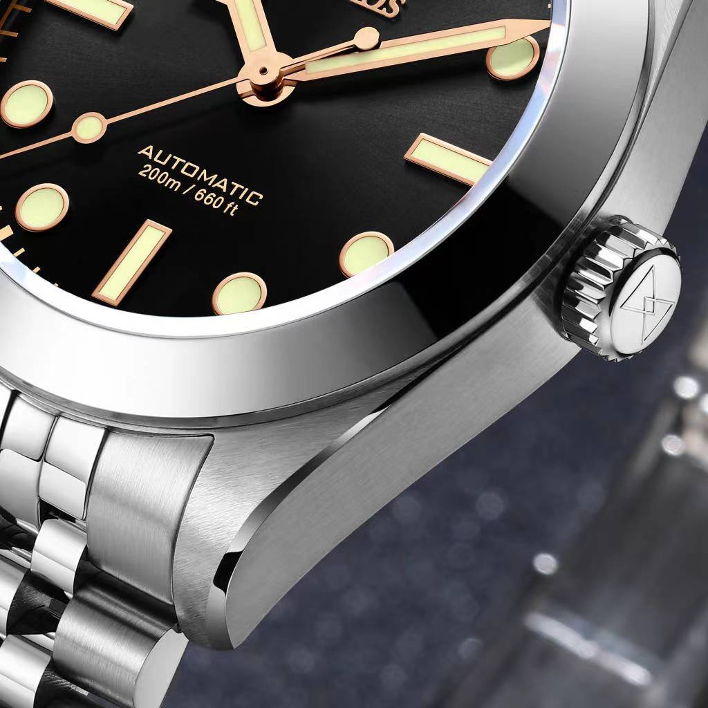 Black / Blue Dial are enamel+sunray with Solid indexes fullfilled BGW-9 Lum Blue light