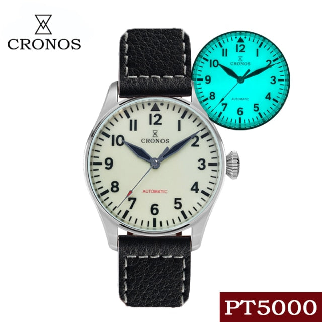 Cronos Pilot Flieger Mechanical Leather Strap L6001