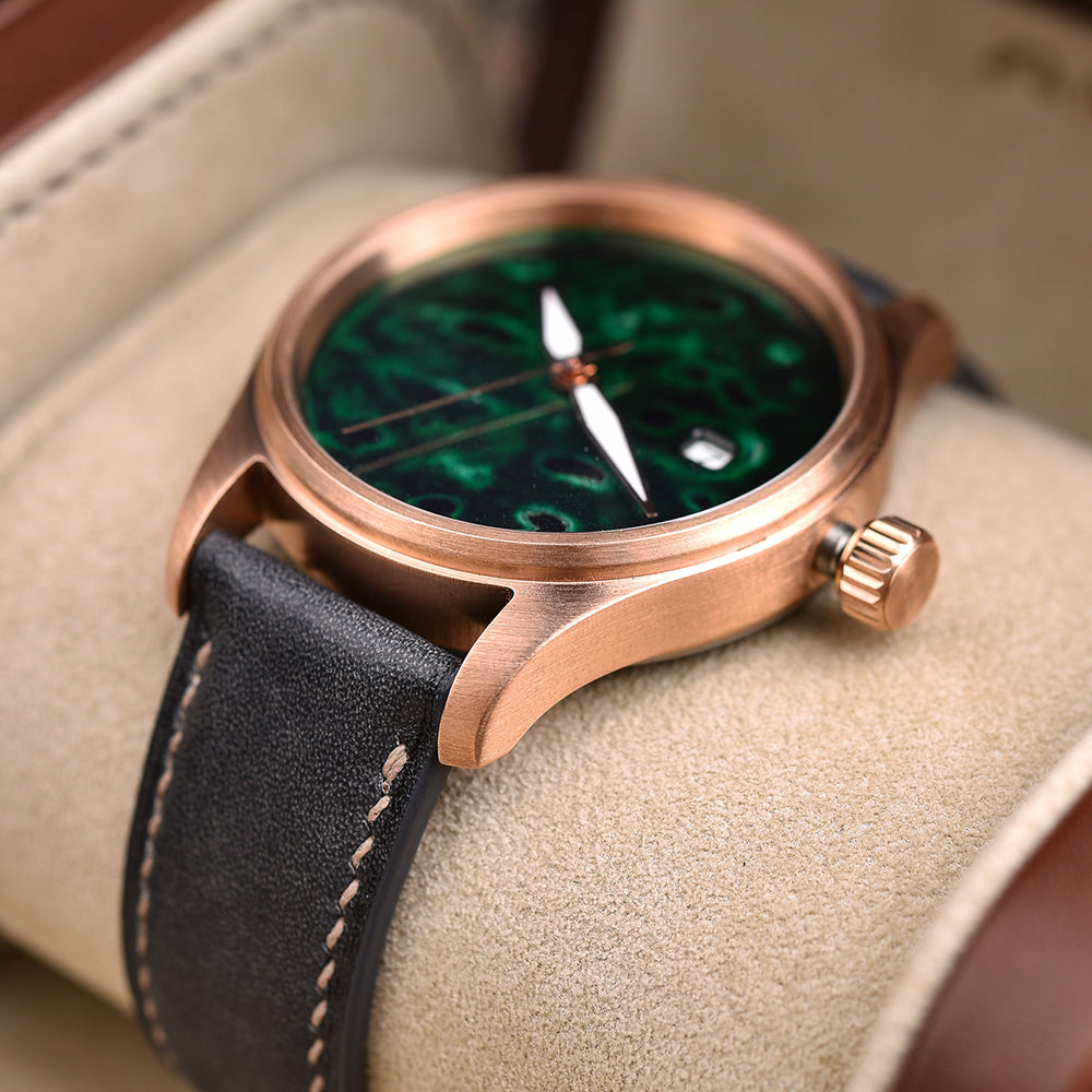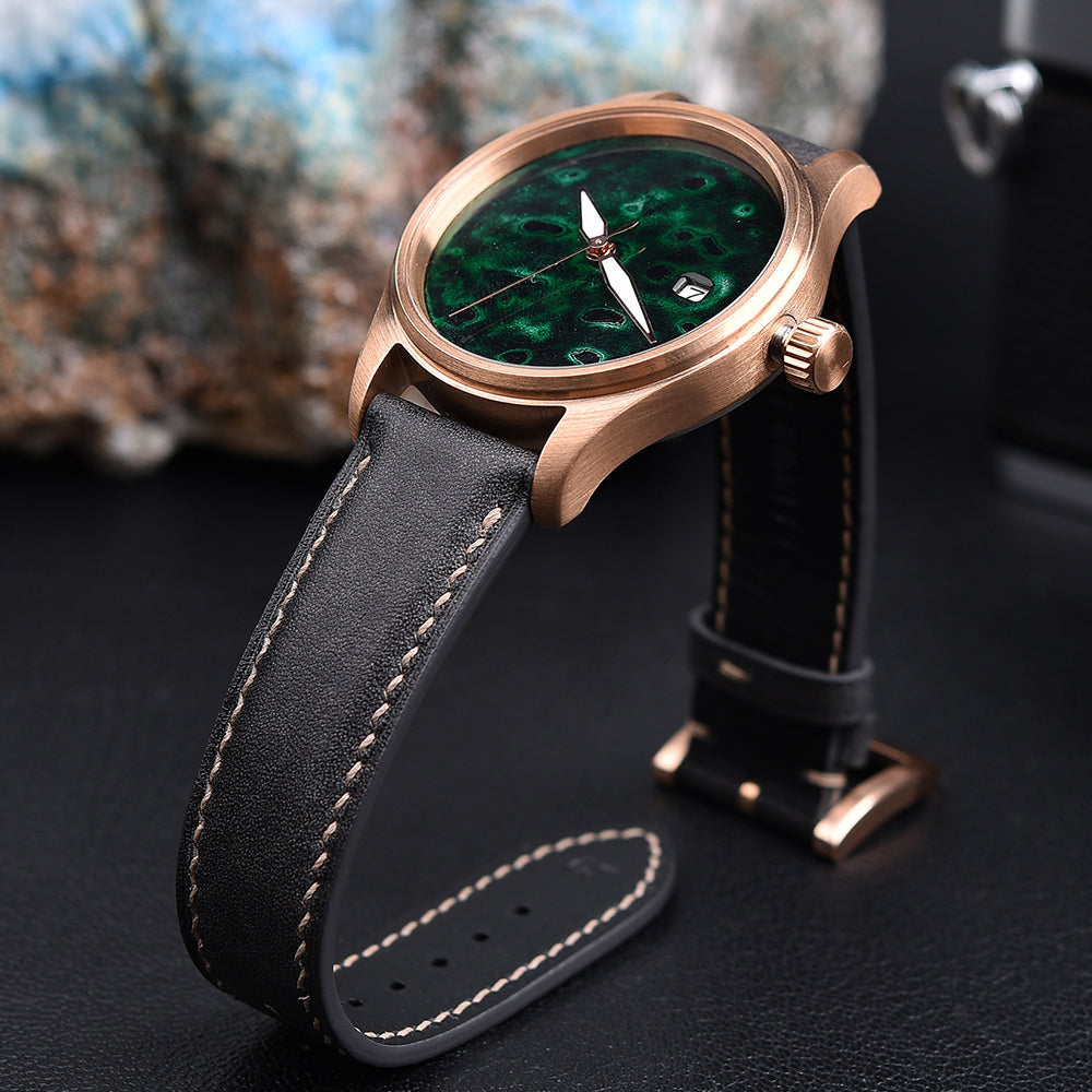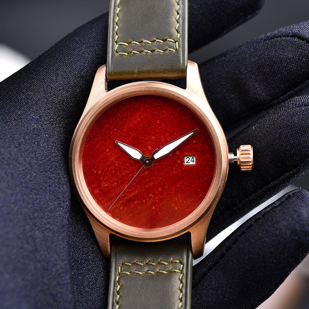 HUASUO 38mm Luxury Bronze Lacquerware Dail Pilot Watch