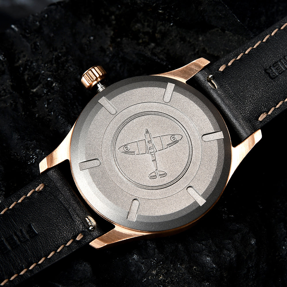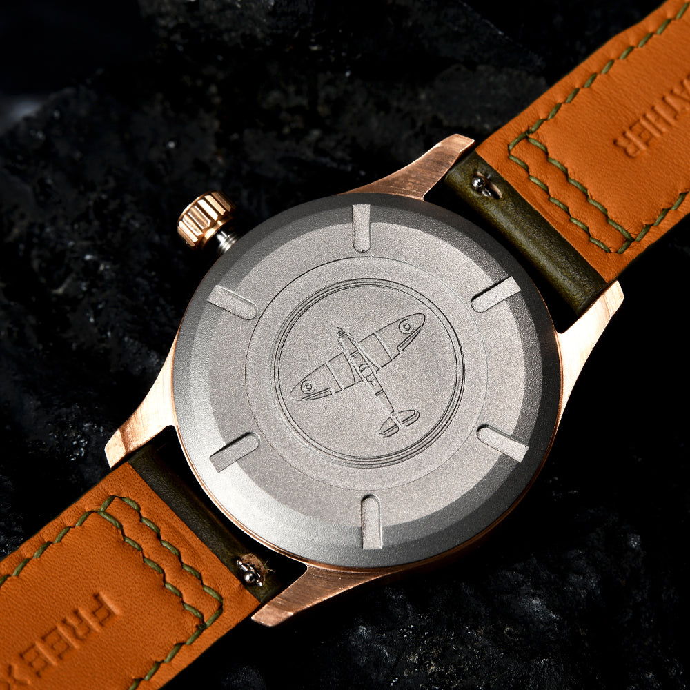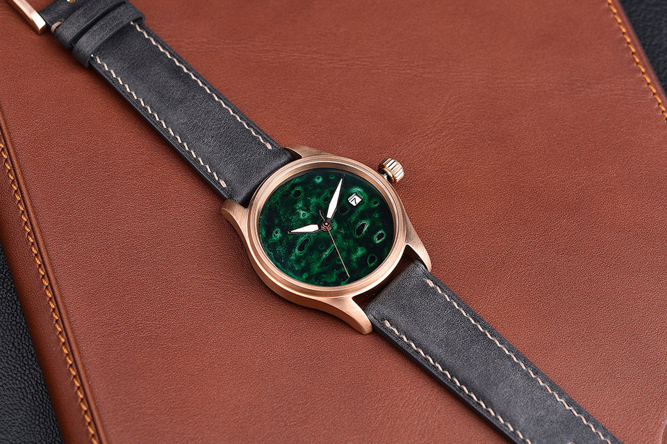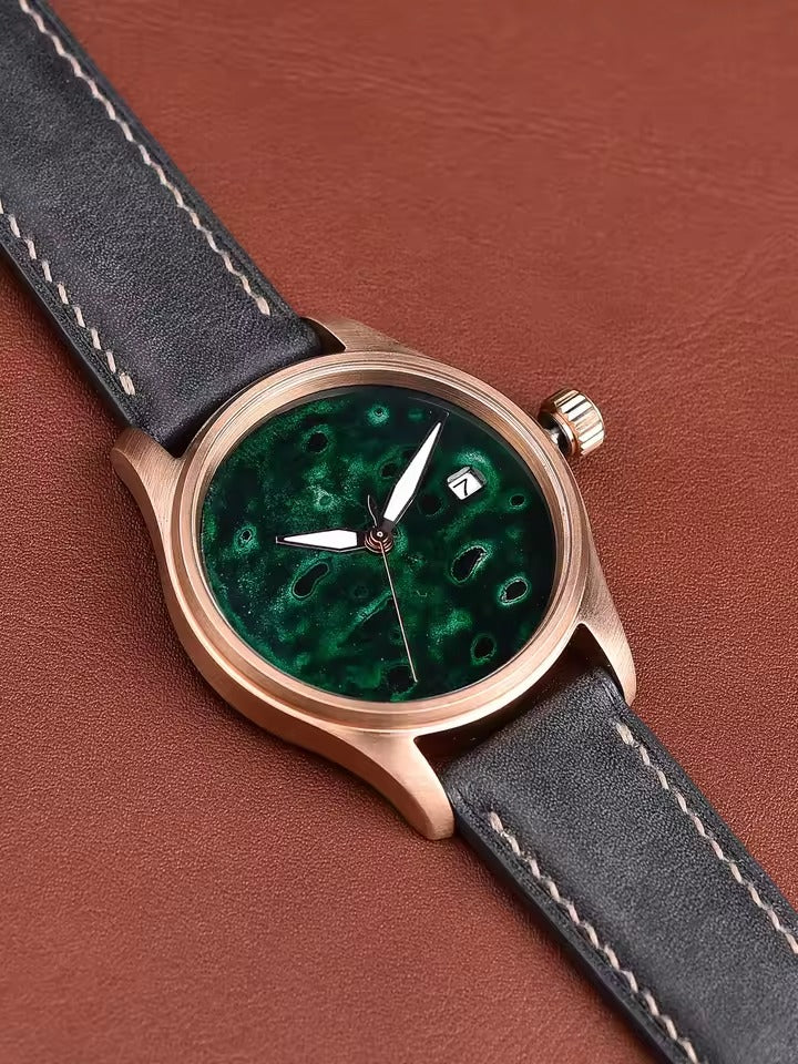 HUASUO 38mm Luxury Bronze Lacquerware Dail Pilot Watch