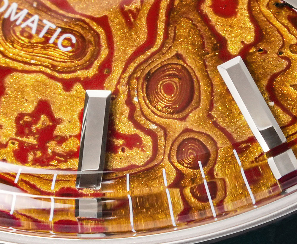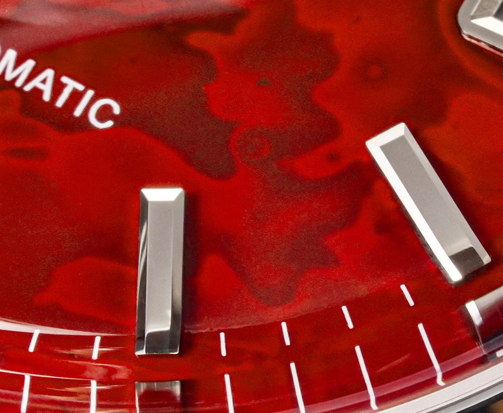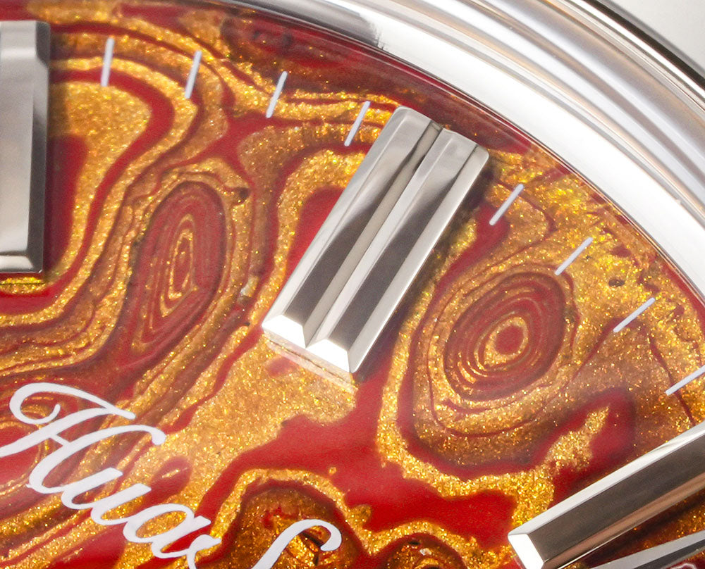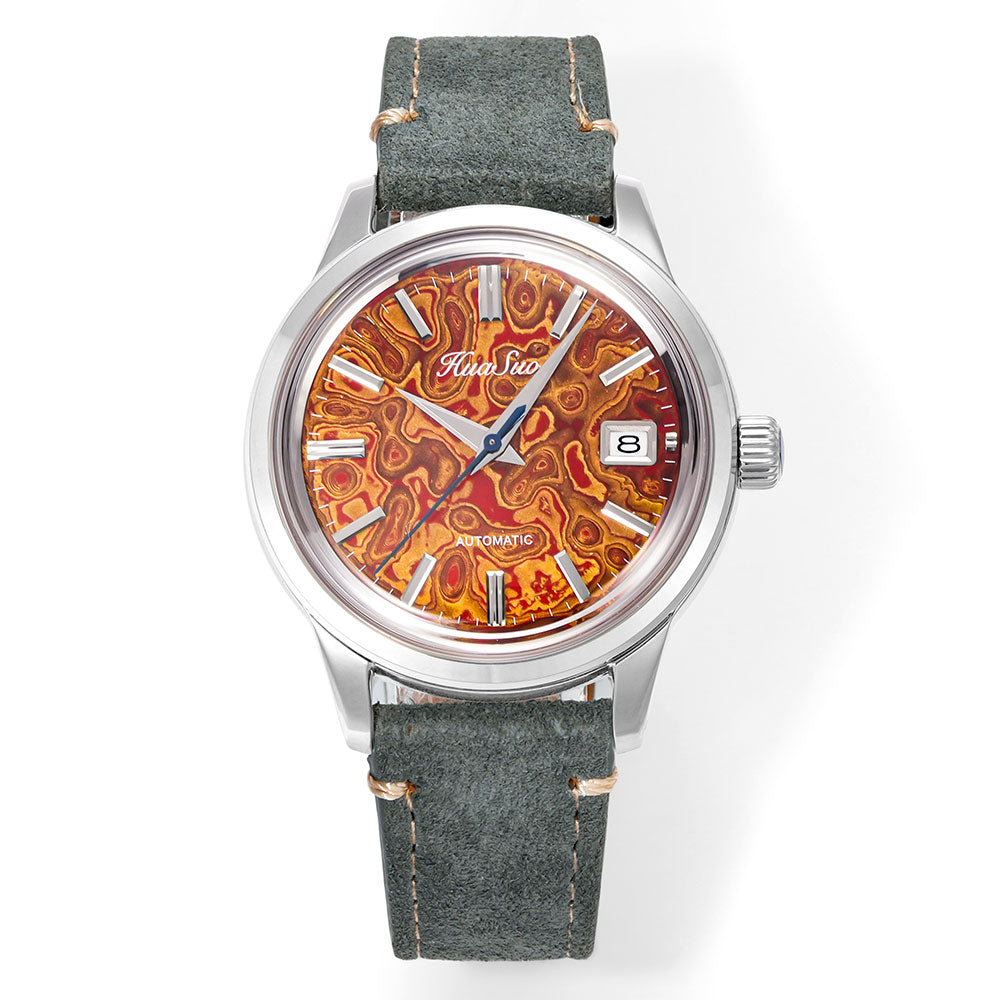 HUASUO Intangible Cultural Heritage Lacquerware Machinery Watch is a dial handmade by craftsmen. Each dial production takes up to 2 months. Because each time the dial is made, it requires layers of lacquer texture to be drawn, and the next layer can only be drawn after the first layer is completely dried. So each dial is unique.