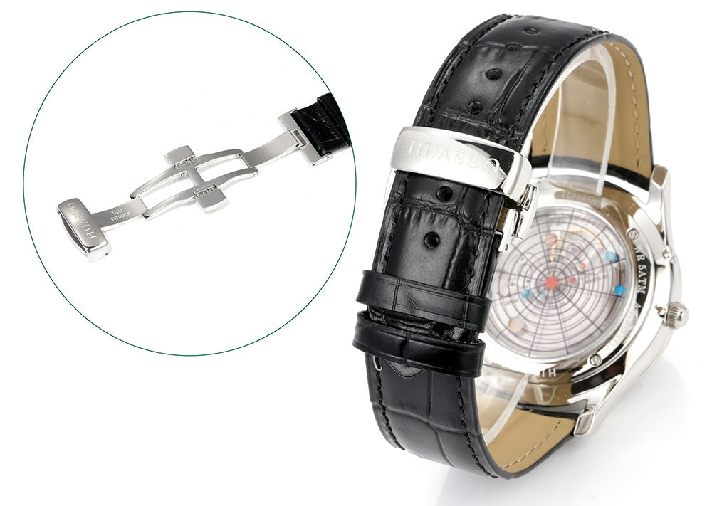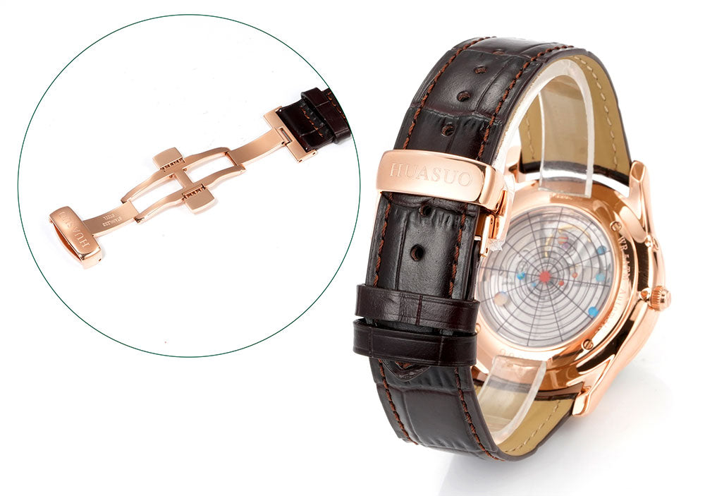 HUASUO Luxury 39mm Meteorite Dial Moon Phase Men's Watches