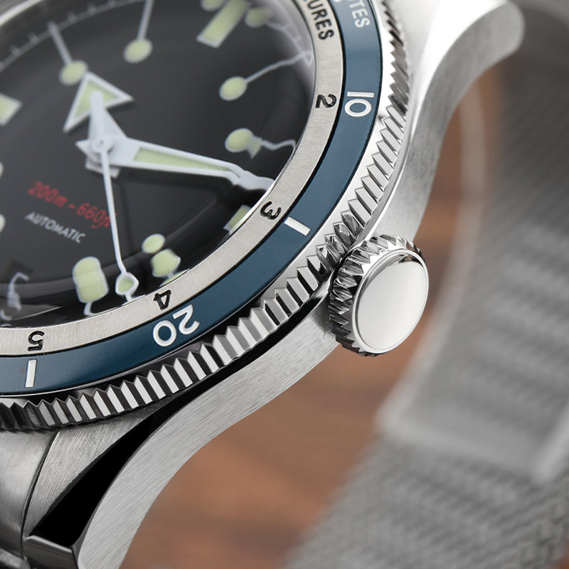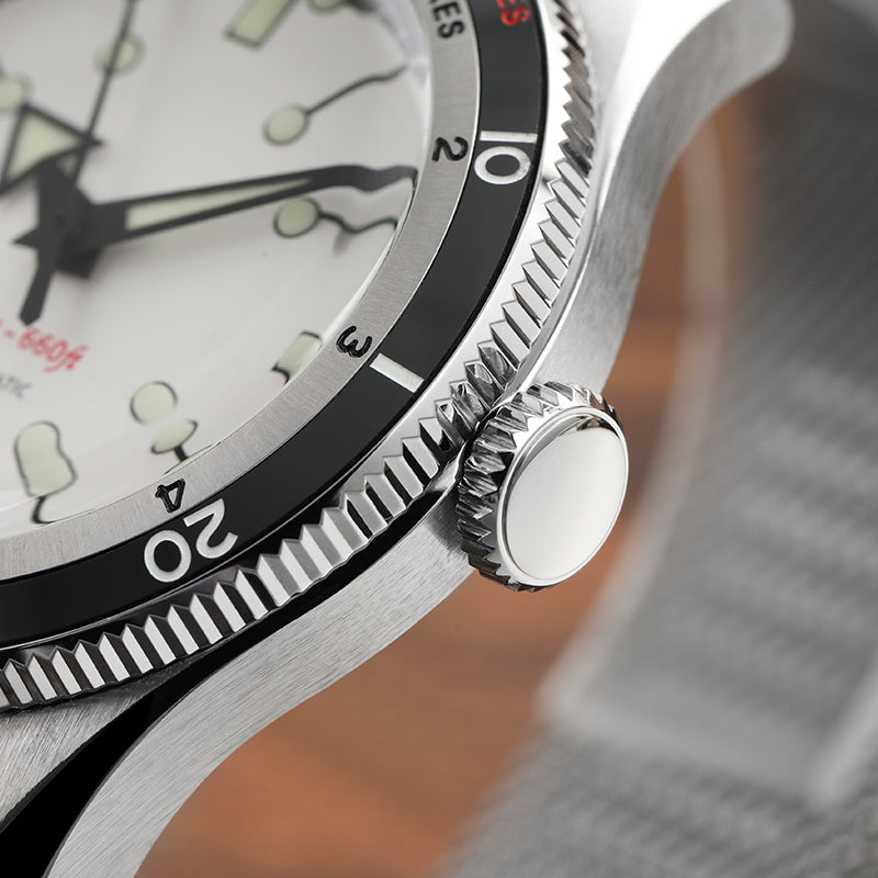 Bezel: 120 clicks high quality ceramic bezel insert with sapphire glass luminous pip.