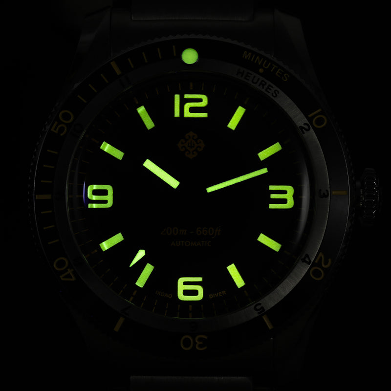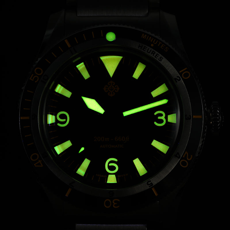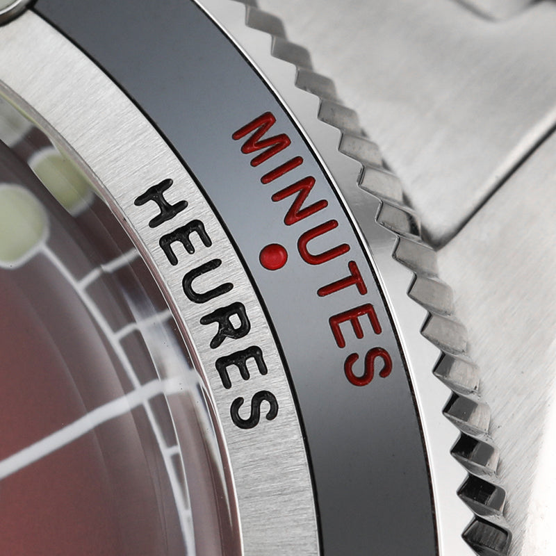 Bezel: 120 clicks high quality ceramic bezel insert with sapphire glass luminous pip.